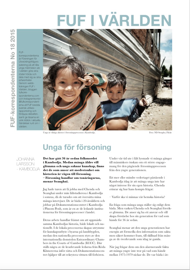 Denna gång skriver våra unga utrikeskorrespondenter bland annat om FN:s skeva könsfördelning, om Casablanca som växer så det knakar, och om hur självhjälp kan bidra till ett mer välfungerande bistånd. FUF i Världen No 18 2015 (pdf) FUF i Världen No 18 2015 (blädderex) Trevlig läsning! FUF-korrespondenterna är FUF:s satsning på att låta unga människor …