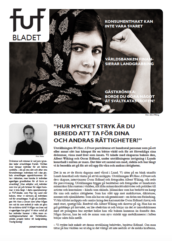 FUF-bladet No 3 2017 Vilken roll och vilket ansvar har individen för den globala utvecklingen? Detta tema tittar vi närmare på i årets tredje nummer av FUF-bladet. Denna gång står FUF i Lund bakom texterna och ni får bland annat läsa om varför konsumentmakt är cyniskt, om en fängslad internetaktivist i Vietnam, och om varför …